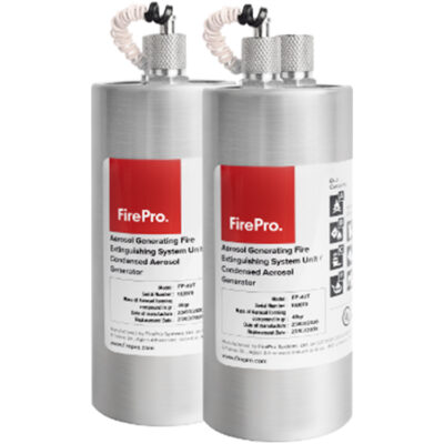 FirePro systems use the latest generation of our patented FPC solid compound which is the pinnacle of many years of research and development. When activated, the FPC solid compound is transformed into a rapidly expanding, extremely effective, efficient fire-extinguishing condensed aerosol. The aerosol is propagated and evenly distributed in the enclosure under protection using the momentum generated during the transformation process. Unlike gaseous agents, the total flooding effect is achieved without increasing the pressure in the protected area/volume. Fire extinguishing is accomplished by the interruption of the chemical chain